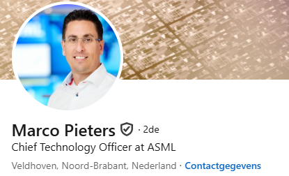 De hoogste technische baas bij ASML is opnieuw een Nederlander. Marco Pieters is de naam en hij wordt benoemd tot CTO, Chief Technology Officer. Gezien de complexiteit van de machinerie die ASML levert een mannetjesputter.