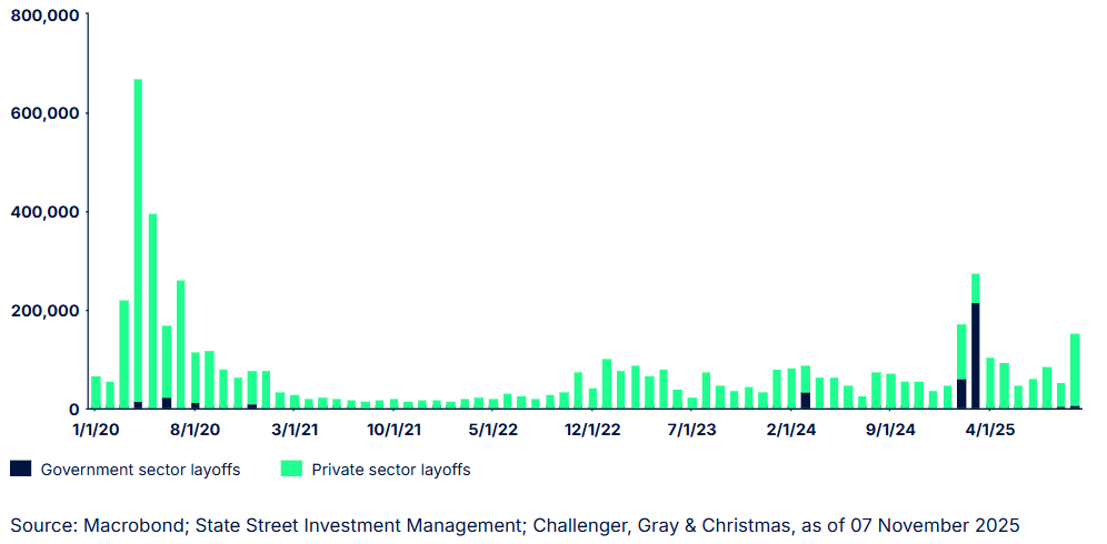 De arbeidsmarkt in de VS ligt wat onder druk. De oktober cijfers (non farm payrolls) krijgen we zeer waarschijnlijk niet, wel hebben we cijfers over ontslagen in oktober. Die zijn drie keer zo hoog als in september en ook hoger dan een jaar geleden in oktober. Geen goed nieuws dus.