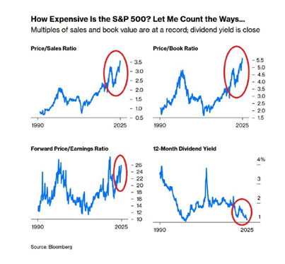 Steeds meer partijen beginnen wat zenuwachtig te worden van de hoge waarderingen van de AI-aandelen. Ja, de situatie is anders dan in 2000, toen de overgewaardeerde bedrijven nog geen of nauwelijks omzet draaiden en vol schulden zaten, maar uiteindelijk draait de beurs om winsten en waarderingen en die waarderingen zijn gewoon hoog.